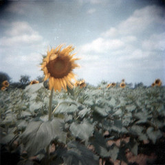 My son-in-law, Gabe Tynes, a very fine photographer, took this rather chilly-looking picture of a sunflower. You can click on the image for a bigger version at his Flickr site. I think it's a sort of deliberately lo-fi effect (to use an audio term) obtained by using a cheap camera.