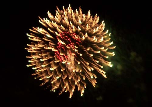 My wife took this a few years ago during the annual fireworks display from the Fairhope pier, which we can see from the bay shore near our house. They’re very pretty over the water. I like the sound almost as much as the sight, and the game of anticipating the delay between the flash and the bang. There’s one that produces only a single bright flash but a very big bang. We’re going to miss the show this year—visiting some family an hour away.
