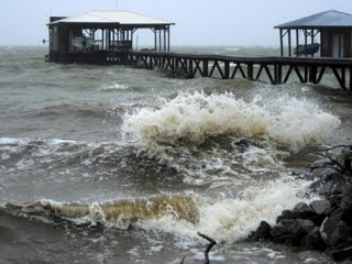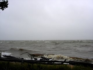 Mobile Bay, as seen from the beach near my house on the eastern shore during tropical storm Ida: a few pictures taken about 7 this morning, as the storm was passing over. If it still had an eye, it must have been to the east, because the wind was out of the north.