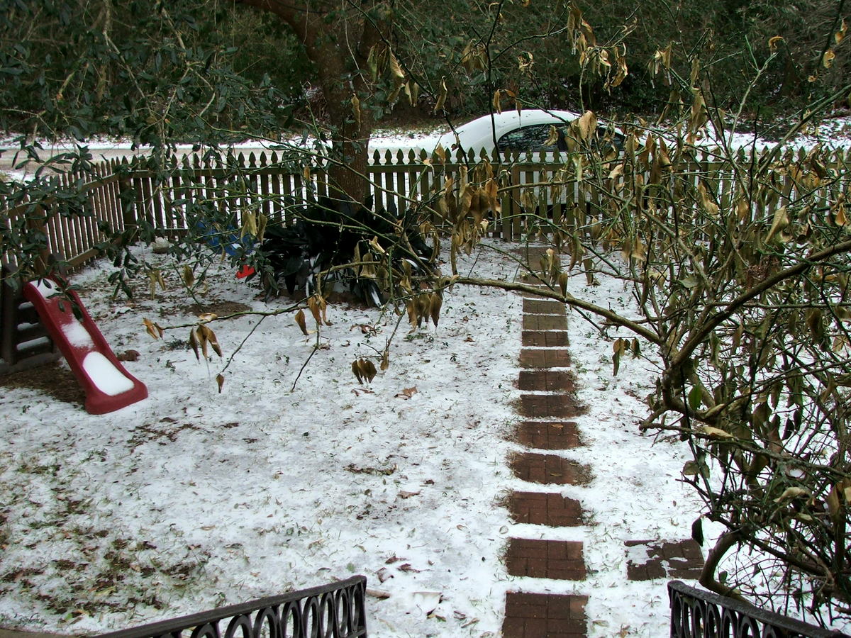 I know this is nothing by the standards of any part of the country north of Tennessee or so, but it's hard to communicate just how freakish it is here. Normally the most severe wintry weather we get is a few days here and there slightly below freezing. Once, ca. 1996, there was enough snow in Mobile to cover the ground and stick for most of a day, and against the stern instructions of the authorities, I drove several of my children over to see it. Now and then we get a bit of sleet or freezing rain. But I've been living in this area for 23 years and haven't seen anything remotely like this.