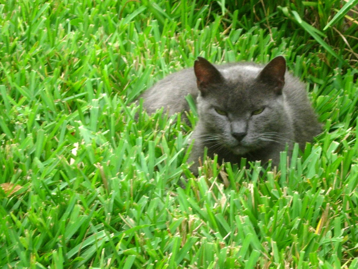 Milo, on the other hand, was only half-civilized, and preferred to be outside. He didn't especially like to be petted, he never sat on anyone's lap, and when we allowed him in, he was soon at the door asking to be let out again. We fed him on the front porch, and he showed up looking for food twice a day. He was ornamental, being of a soft gray color with yellow eyes, and I suppose he did his part to keep rats and mice away. He often lay around in the yard sleeping during the day, and made the crawl space under the house his retreat. I always left the door to the crawl space propped open a bit for him.