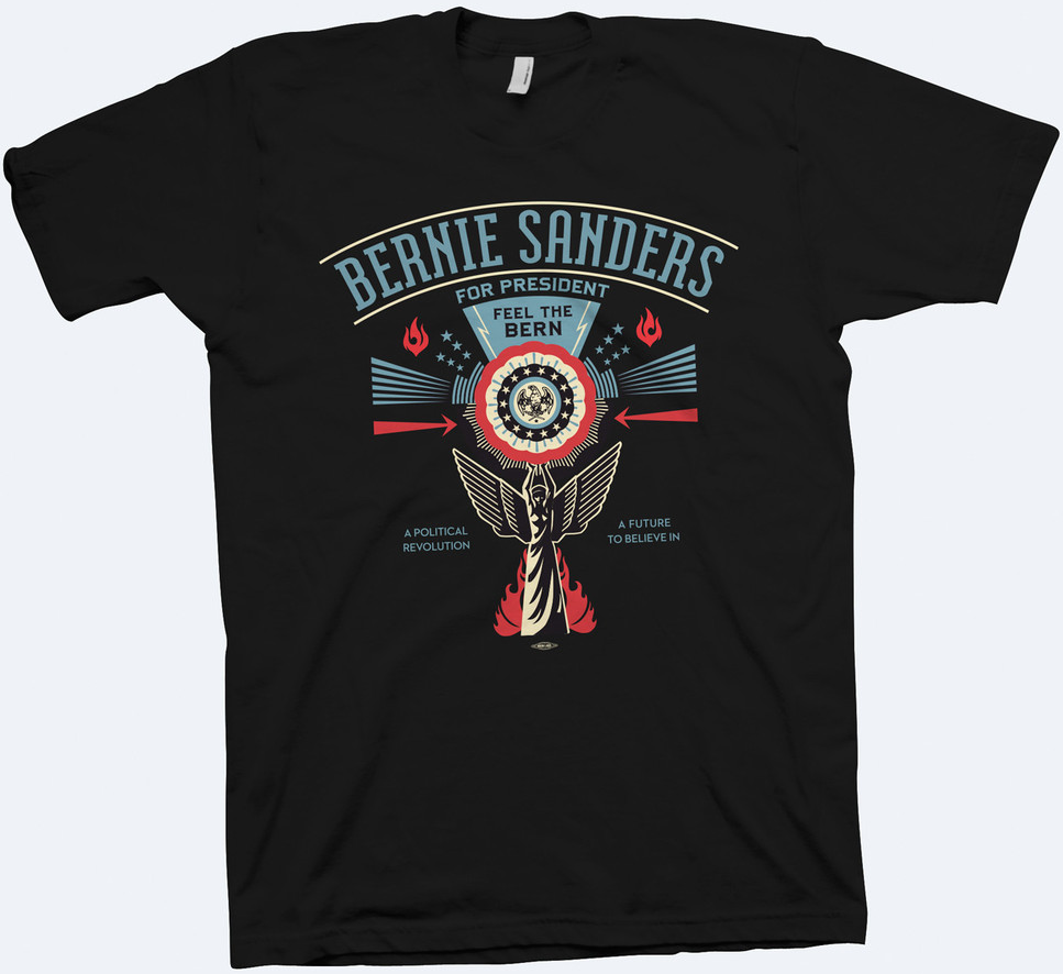 I hadn’t seen this before. I had to go look on his website. Actually, now that I think about it, Sanders T-shirt is the first campaign paraphernalia that I have seen. It’s amazing how sheltered one can be when there’s no TV in the house.