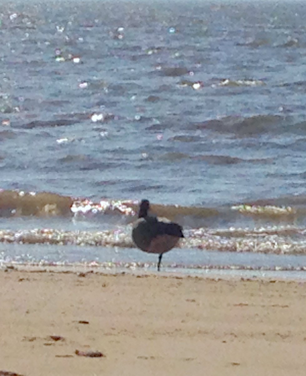 Well, I really didn't intend to talk so much about our collapsing culture this week. Here's something that's not collapsing: the right leg of this Canadian goose. (That's the name of the species. I cannot actually verify that the goose has ever been a resident of Canada.) Not a very good picture, but good enough for you to see that it's standing on one leg. It stood that way for at least five minutes or so while I tried to get close enough to get a picture without scaring it away. How is that even possible? The bird probably weighs at least ten pounds, and most of that weight is, as you can see, hanging in the air unsupported while the unsupportee gazes at the water.