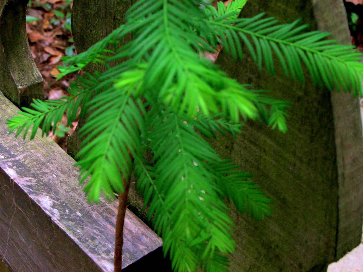 That's actually a little cypress tree. It was growing next to the fence around our yard, a "volunteer" where it wasn't wanted. I forced myself to pull it up, though I always hate to do that, because eventually either it or the fence would have to go. Then I didn't want to throw it away, so I took it over to the edge of the woods and planted it. It may be too damaged to survive. I'll keep it watered and see if it can survive the summer.