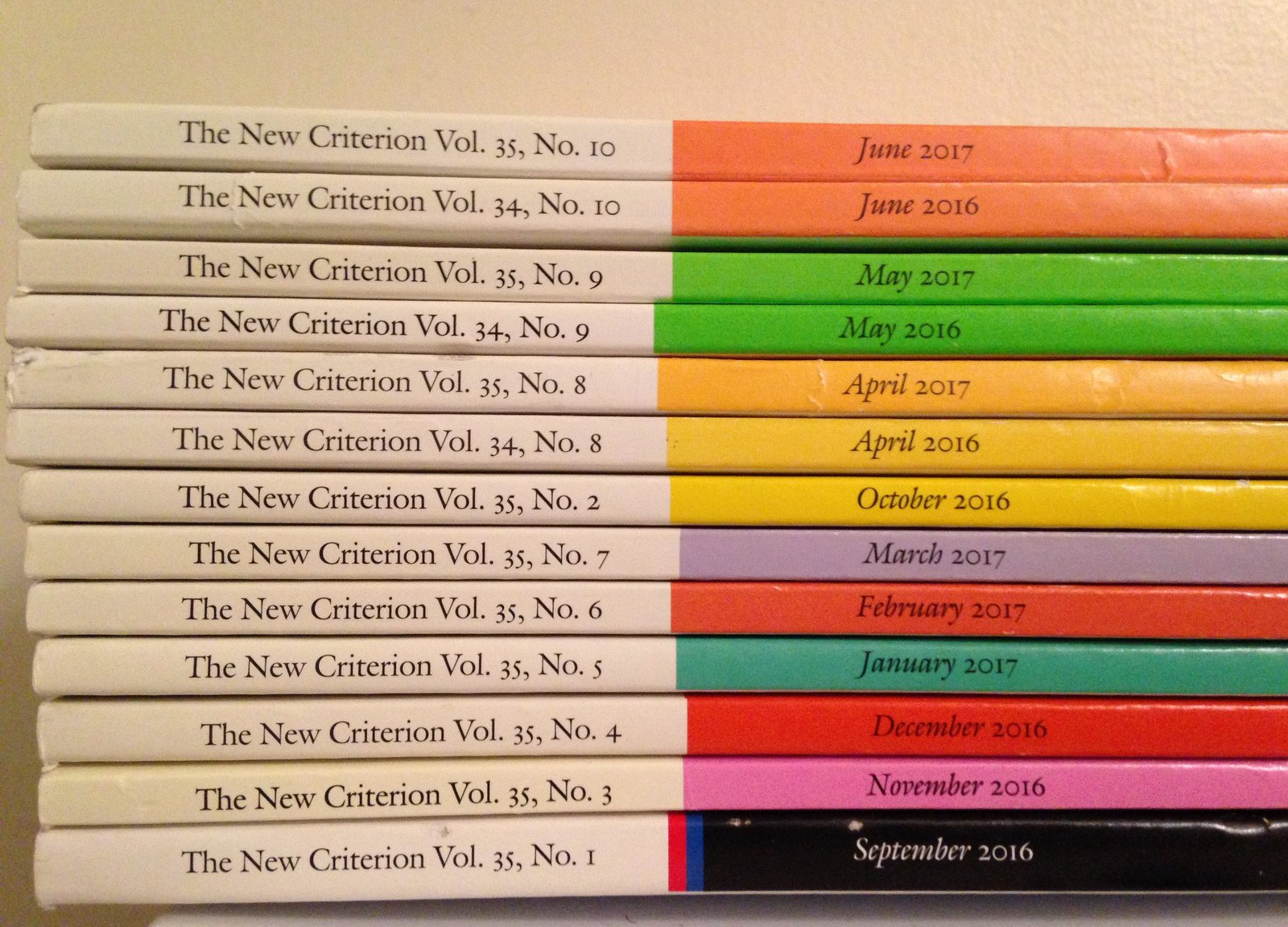 This has been on my mind a lot in recent weeks, as two of my grandchildren, boys ages 5 and 7, are spending several days a week with me while school is out for the summer. Except when they're asleep, they never stop looking, wondering, questioning, investigating, experimenting, and in general trying to figure out literally everything in the world, as far as they can see it. They noticed this stack of back issues of The New Criterion.