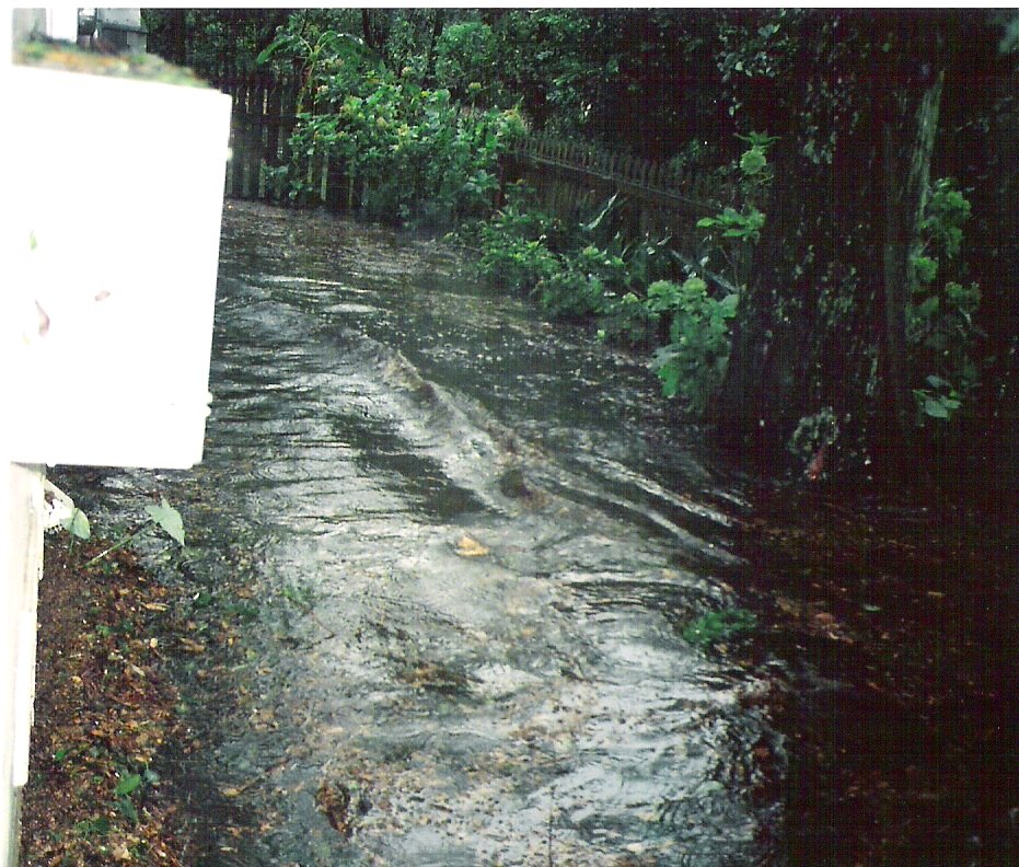 If you're ever in the path of a hurricane and want to extract the maximum possible anticipatory dread from the waiting, I recommend reading Isaac's Storm, a vivid account of the 1900 hurricane that destroyed Galveston, Texas. I think I read it in 2005, not long before Hurricane Katrina, though it could have been the previous year, when we had Hurricane Ivan, which was bad enough. Here's my Sunday Night Journal from September 4, 2005, a few days after Katrina: "Uneasy in the Aftermath". I mention in that post that the water was lapping against the side of my house. This is what it looked like: