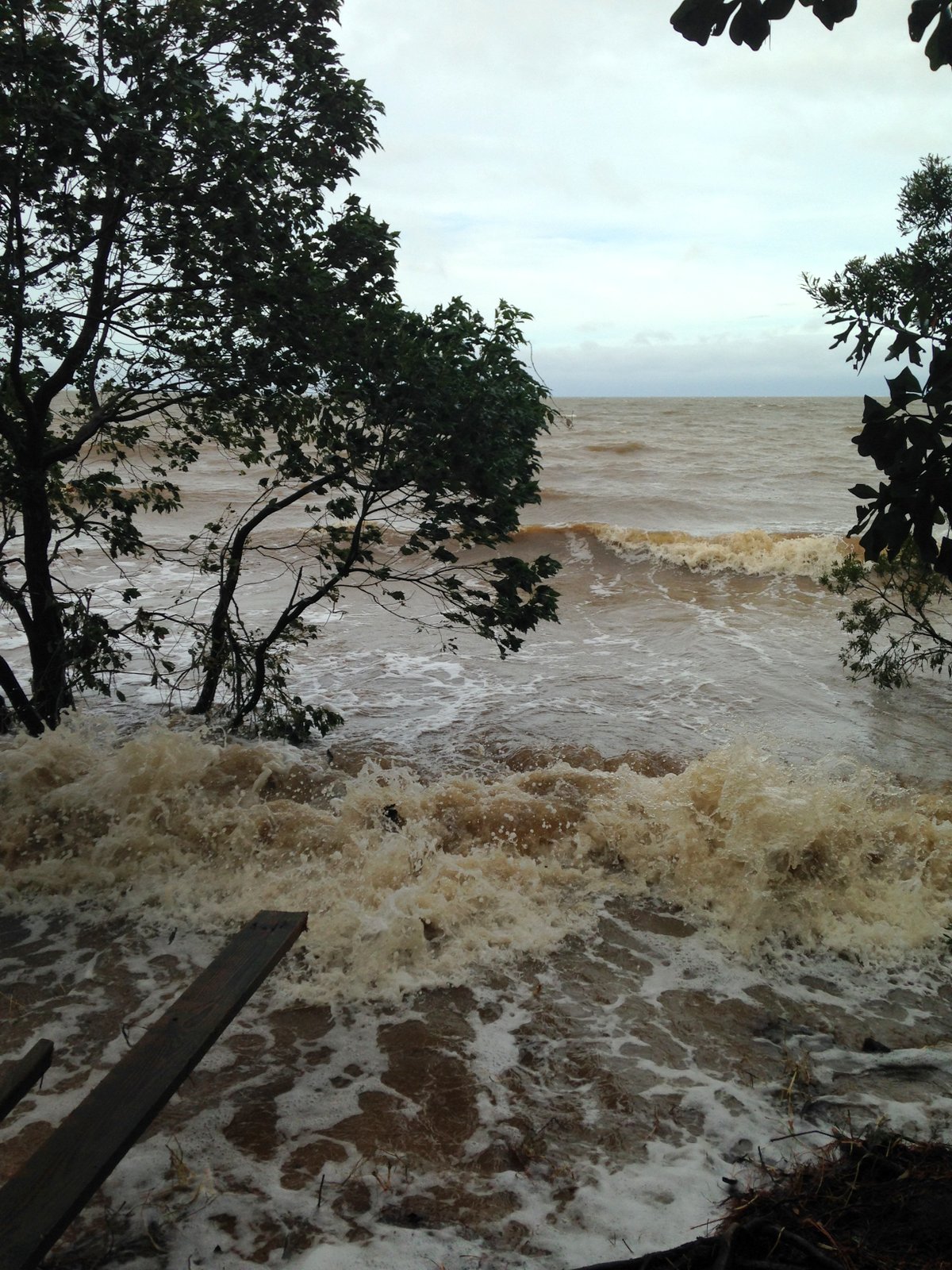 This is what I saw around 8 this morning. There's not supposed to be water where I'm standing. The beach should start about where that wave is breaking beyond the trees.