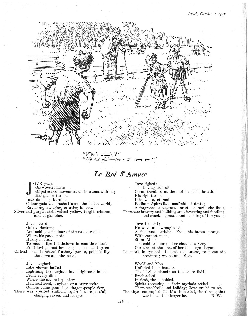 Update 3/15/2018: There's a discussion in the comments about the layout of this poem. Courtesy of Marianne, here's the way it looked when it was first published in Punch in 1947. Click on the image to see it in something like full size.