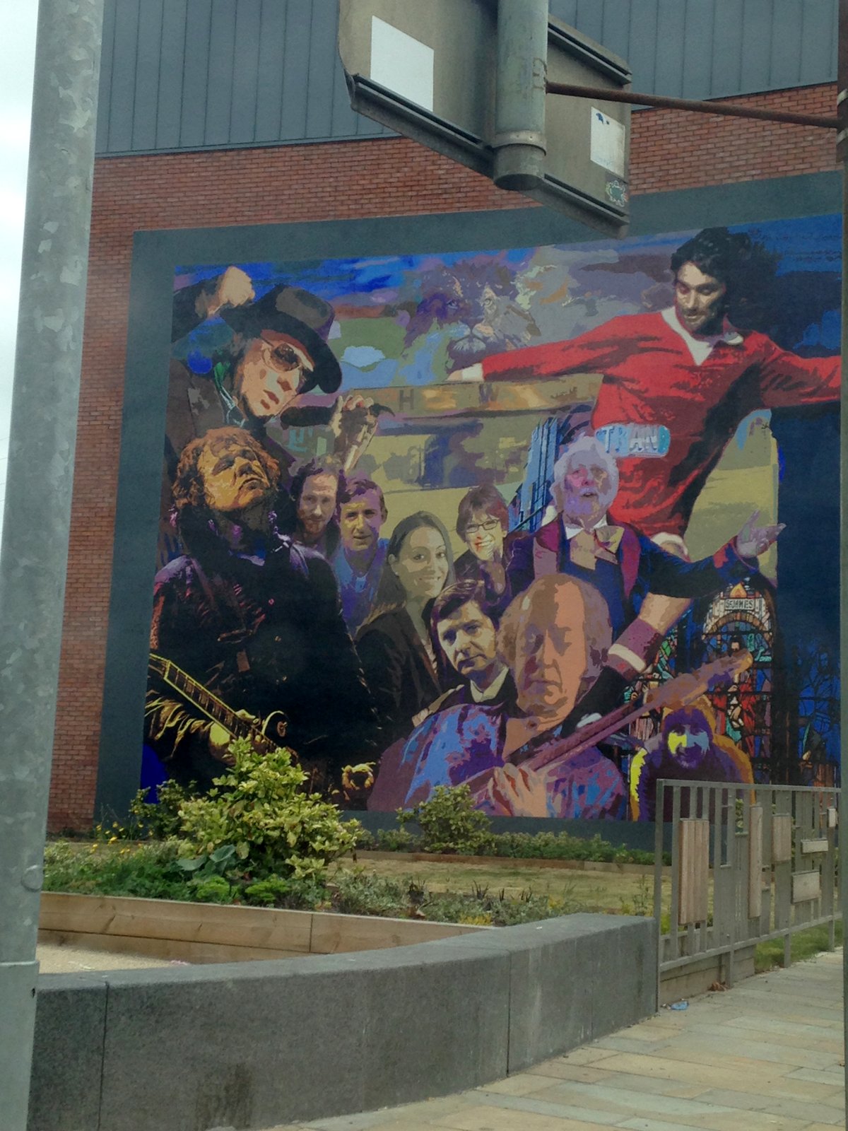 That's him in the upper left, of course. Below him is Garry Moore, who is not all that well known in the U.S. I'm guessing that the soccer ("football") player in the upper right is George Best, for whom the airport is named. I don't recognize anyone else, though no doubt I would recognize the name of the guitarist at the bottom.