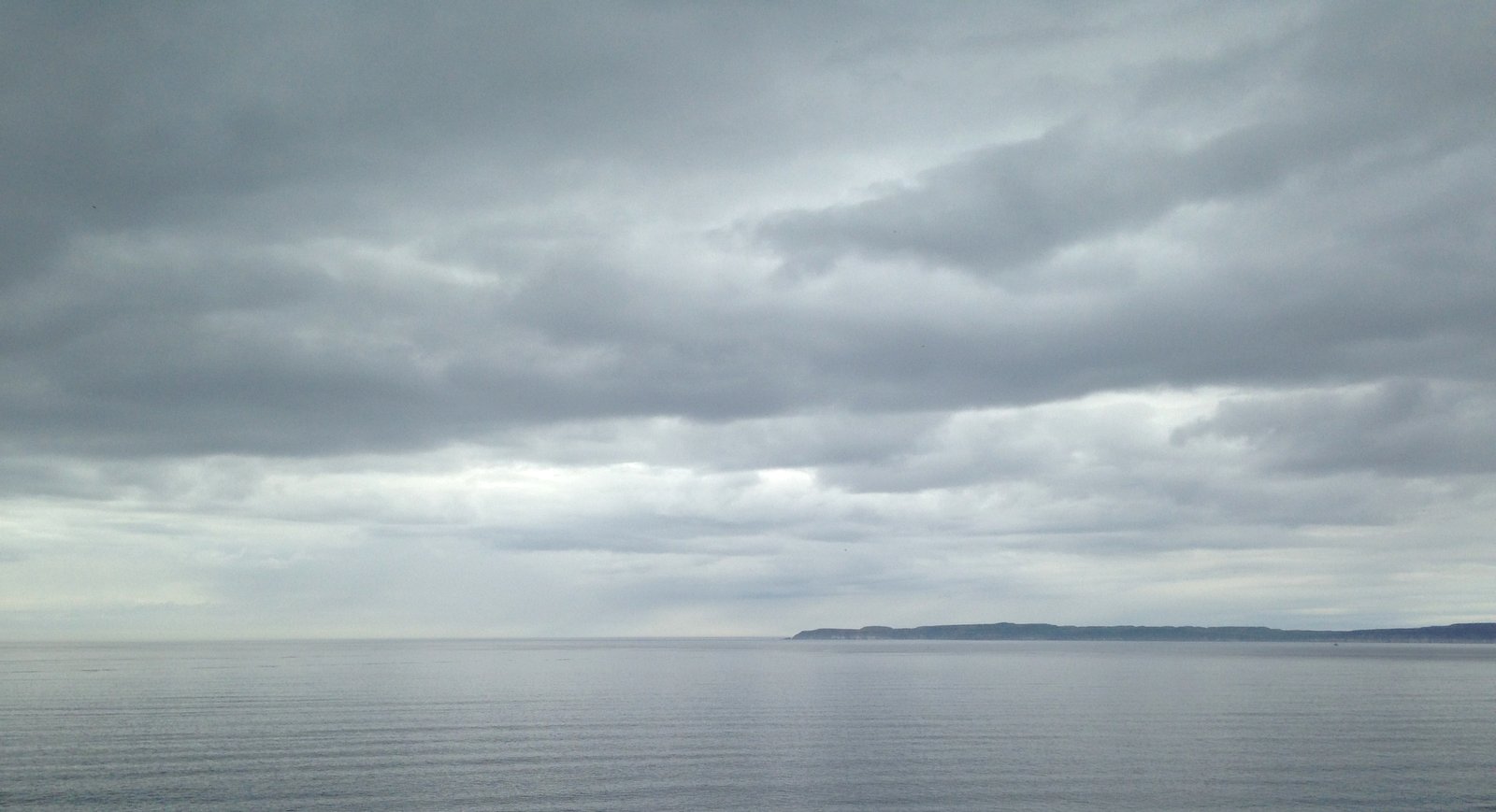 You can walk out on a sort of promontory comprised of these columns. (Actually I think the formation goes on for a mile or more along the shoreline–we only saw one part of it.) This is a view from the tip of that promontory looking back toward the mainland. There's something kind of intriguingly ominous about this image.