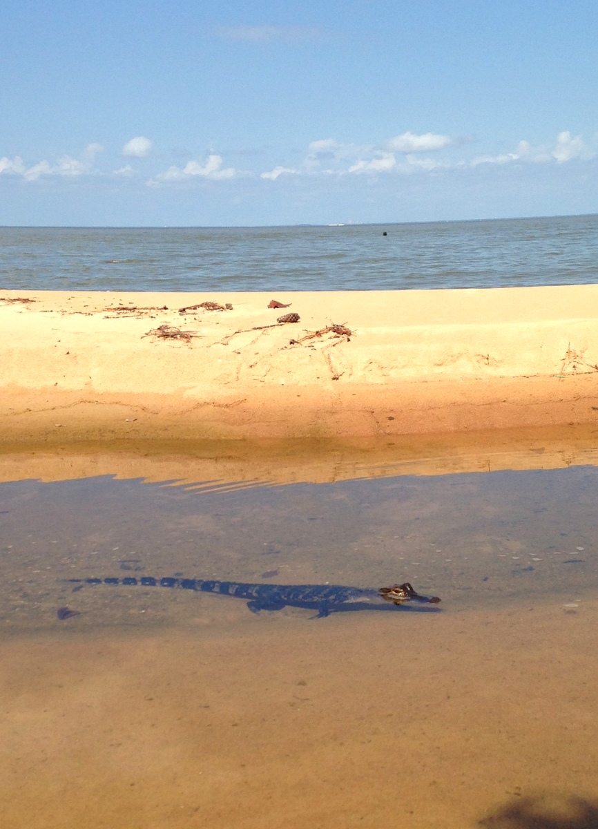 Alligators do have an oddly cute look, but they’re mean as hell. This one is too small to really hurt anybody. Two feet long at most. But I don’t want it to move in here permanently.