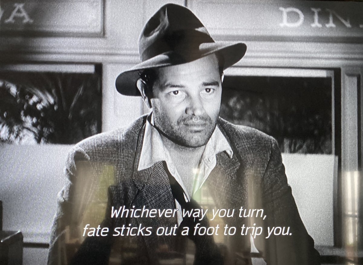 Detour is an excellent example of the noir genre, apparently considered one of the classics. It has a pretty simple plot, which makes it different from many of its type. A famous story has it that William Faulkner and another writer working on the script for The Big Sleep were puzzled by a plot point and asked Raymond Chandler for clarification–and he didn't know, either.